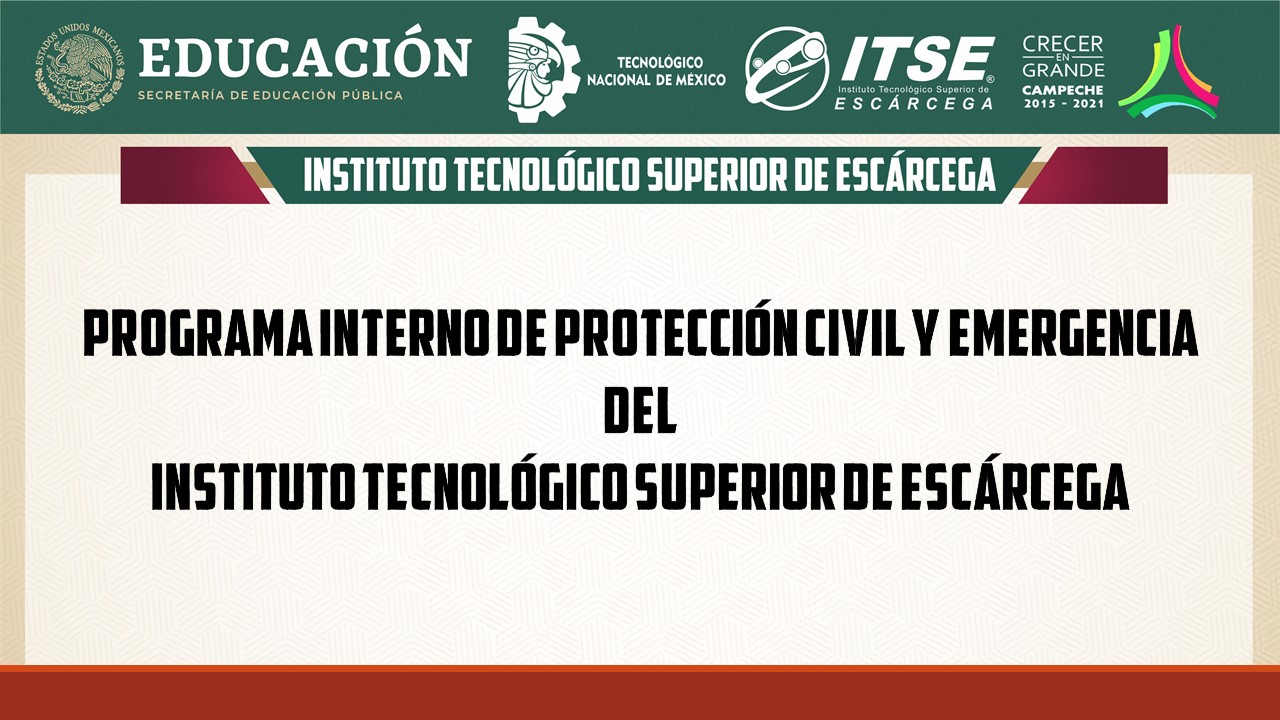 Por tal razón y en cumplimiento a lo establecido por el Programa Nacional de Protección Civil y la Normatividad en materia de protección civil, El Instituto Tecnológico Superior de Escárcega se ha dado a la tarea de conformar e instrumentar diversos mecanismos para la atención de ello, sin olvidar además sus recursos humanos y materiales.